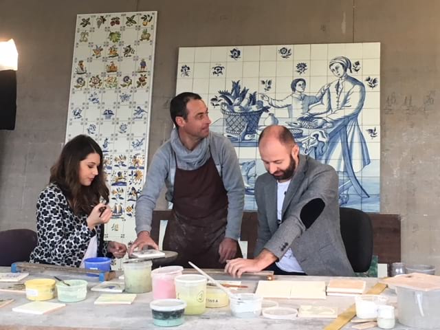 The Macedonian postcard has been filmed at the Marqueses de Fronteira Palace in Lisbon. The 2018 Macedonian Eurovision hopefuls Eye Cue will be depicted strolling through the fantastic gardens of the palace and the Galeria dos Reis (Gallery of Kings) where one can find the statues of the Kings of Portugal. Here you can also find a magnificcent mural that borders the garden, where you can admire tiles with paintings that illustrate the months of the year, the four elements and signs of the zodiac. The Macedonian duo had the opportunity to check out the tile manufacturing process at Lamego Widow’s Ceramics Factory.