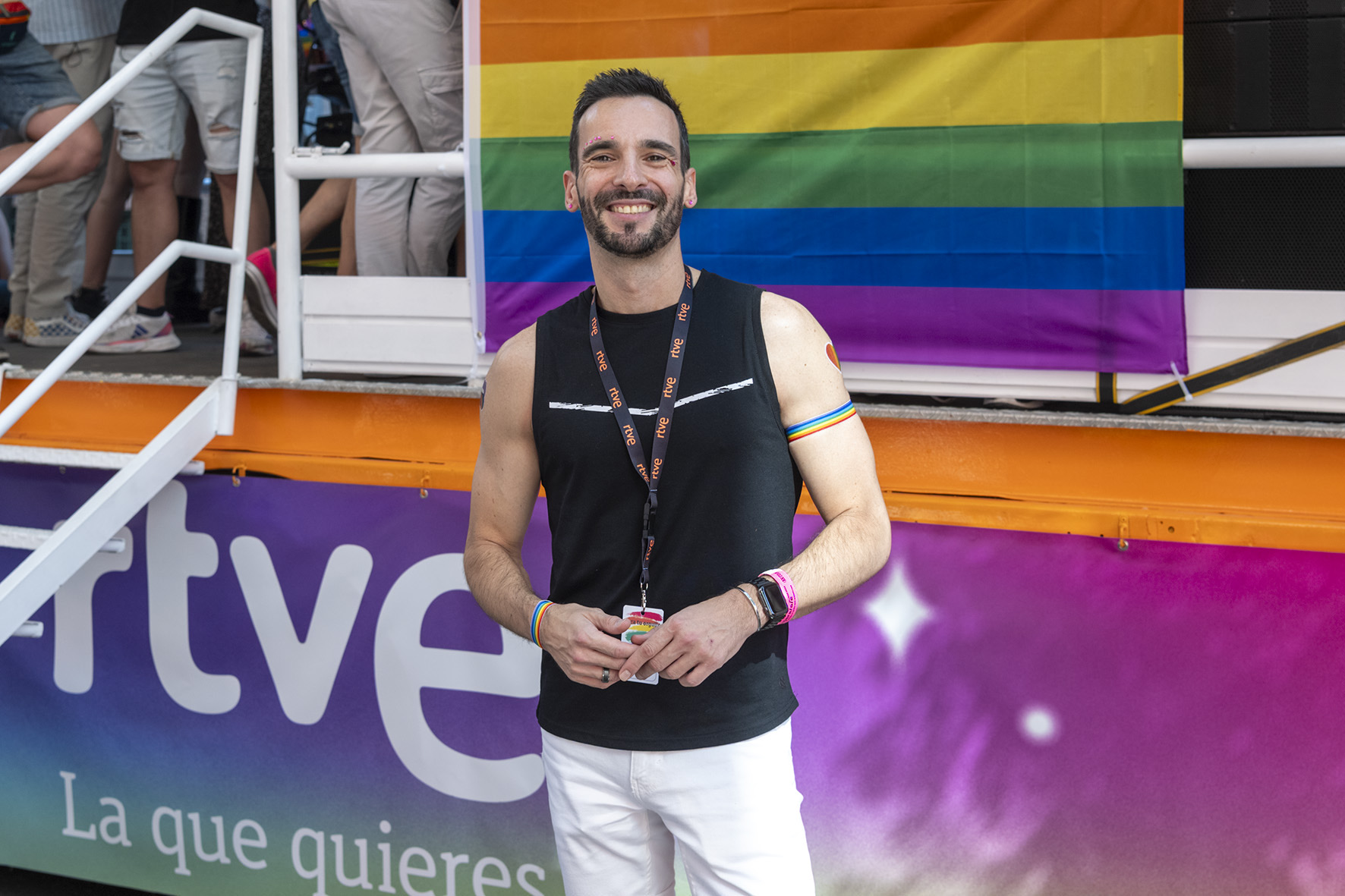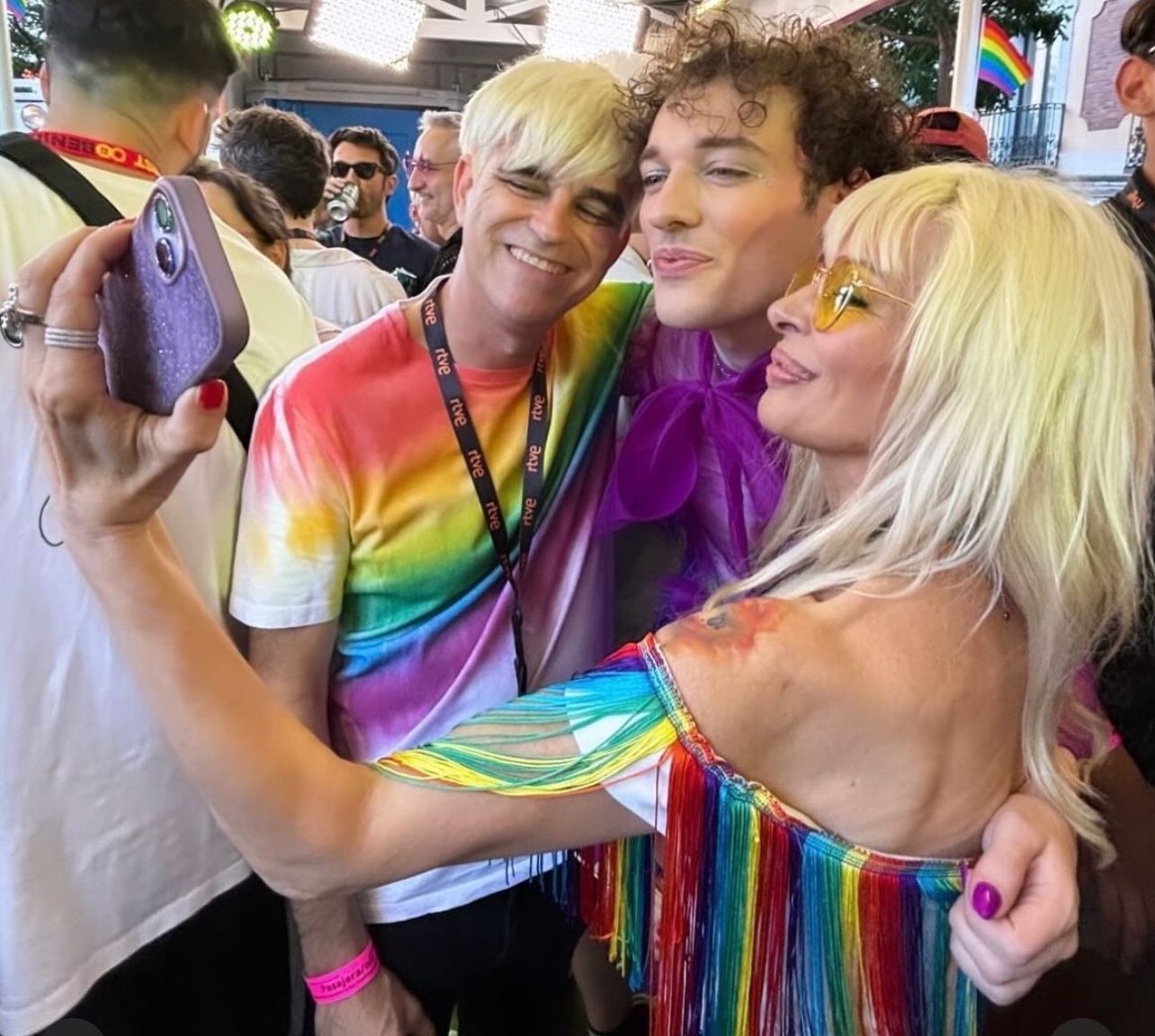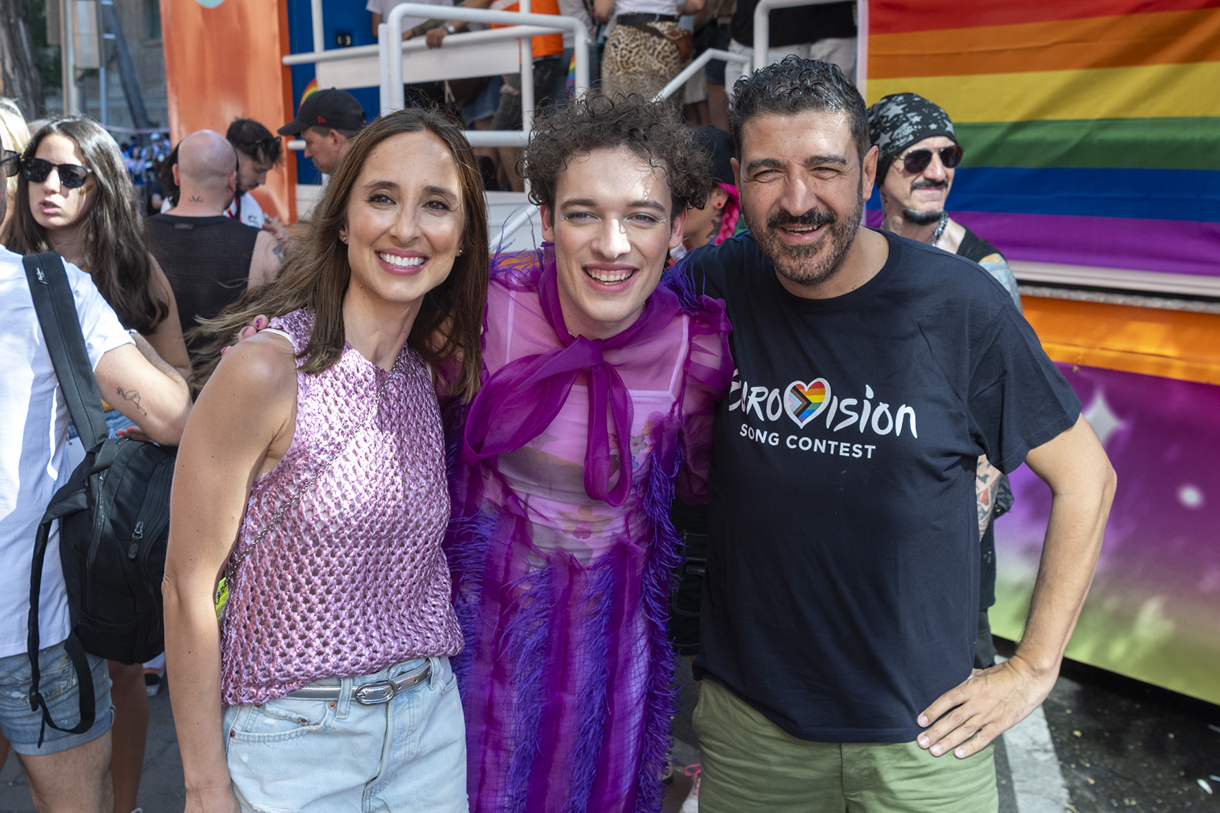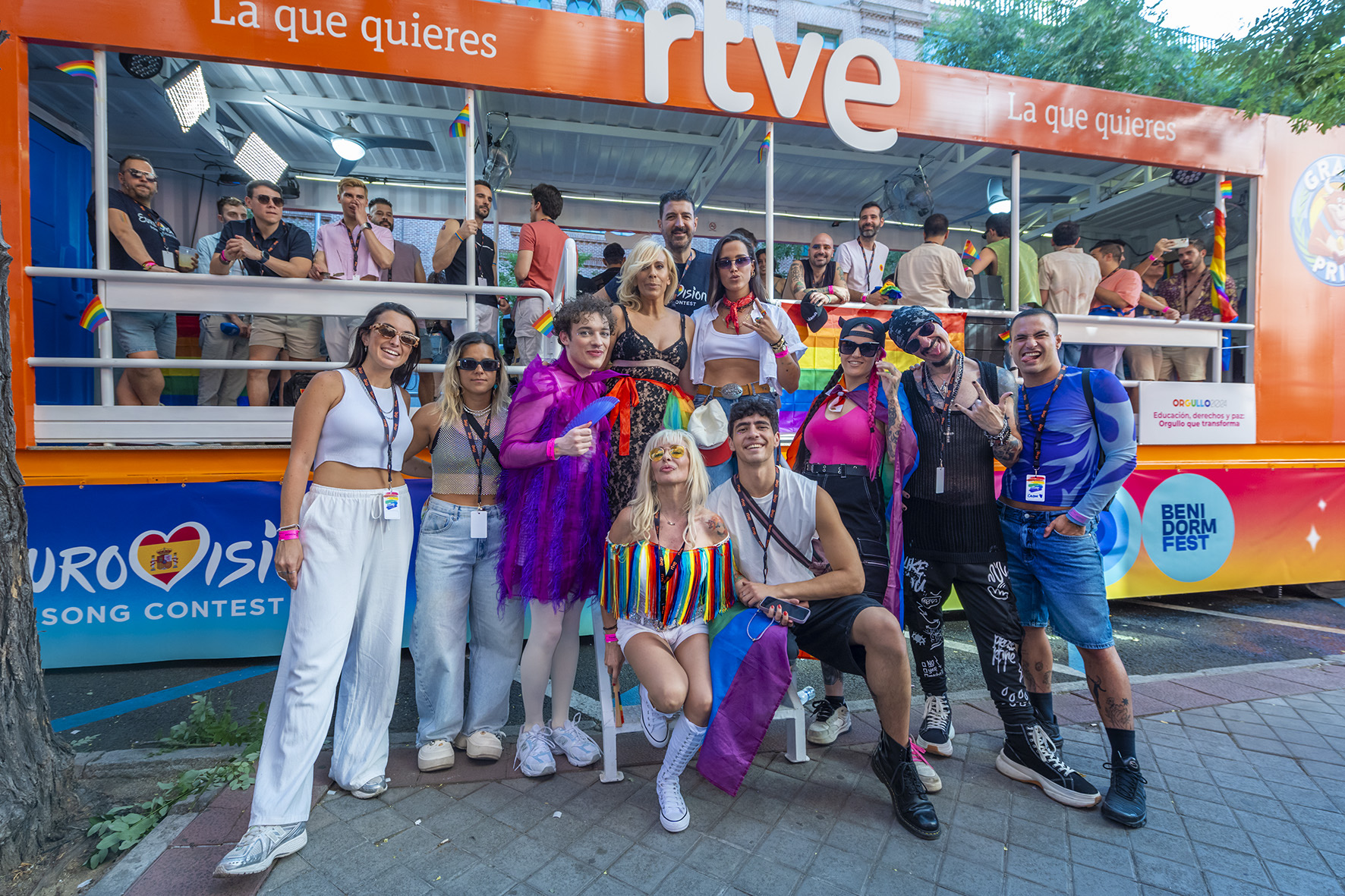 The excitement wasn’t just for the performers. Maria Eizaguirre, Head of Communication and Participation at RTVE, was there to soak up the atmosphere alongside Lluis Guillera, a familiar face from RTVE news, and Marc Caldero, the charismatic host of Benidorm Fest 2024. Their presence underscored RTVE’s commitment to diversity and inclusion, values that resonate deeply with both the Eurovision and Pride communities.