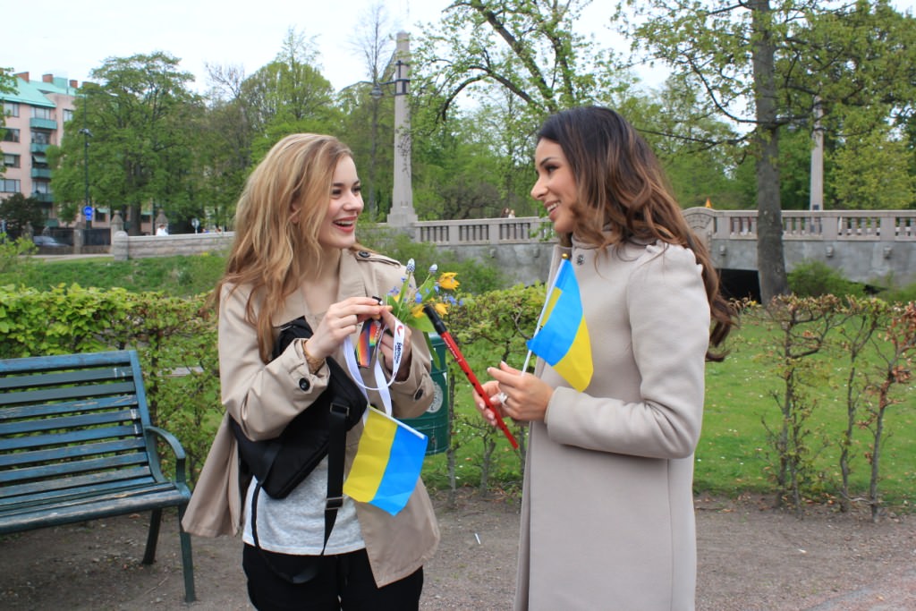 Yesterday, We are one motto was once more illustrated by the two hot favourties according to oddschecker.com, Emmelie de Forest representing Denmark and Zlata Ognevich from Ukraine, met in town for a walk in one of the most beautiful parks of the host city, Malmö. Both Eurovision Song Contest hopefuls discussed their stay in Sweden and Eurovision before exchanging souvenirs. Igor Voykovinskiy, our giant sensation from Ukraine who talked with fans earlier this week, also met with Emmelie and he was very pleased to have met the Danish contestant. He told the press: This is the first time in my life when I am accompanied by two extremely beautiful ladies on my walk in the park. This can’t get more exciting for me. Being here on Zlata’s team and getting to know the other contestants just makes me feel very special.