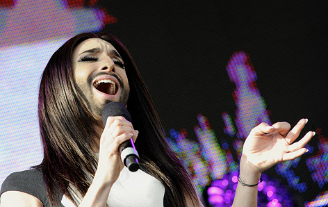 The Queen of Austria aka Conchita Wurst made her first public appearance in Austria after her triumph in Denmark. The Eurovision winner gathered more than 10,000 fans and friends at her live concert. Just before attending the concert Conchita had the honour of meeting Chancellor of Austria Mr. Werner Faymann and Austria’s Minister of Culture Mr. Josef Ostermayer who congratulated her for her honorable Eurovision victory. Conchita has brought back the Eurovision trophy on Austrian soil after 48 years.
